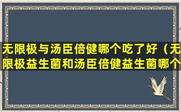 无限极和汤臣倍健都是知名的保健品品牌,它们各自生产的益生菌产品都有一定的市场认可度。选择哪个品牌的益生菌产品更好,需要根据个人的具体需求、产品的成分、质量、价格以及个人的体质和健康状况来综合考虑。