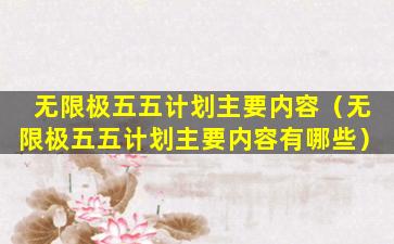 无限极(Infinitus)是一家中国的健康产品公司,隶属于香港李锦记集团。无限极的“五五计划”可能是指公司的一个发展规划或者市场策略,但是具体的内容需要查阅无限极官方发布的资料或者新闻报道。
