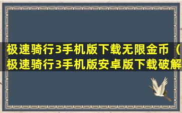 如果您对“极速骑行3”这款游戏感兴趣,我建议您通过合法渠道下载和购买。您可以在Google Play商店或其他官方应用商店搜索该游戏,并按照正常流程购买和下载。这样不仅可以保证您的设备安全,也是对开发者辛勤工作的支持和尊重。