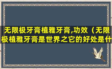 如果您想了解无限极植雅牙膏的具体功效和配方,建议您直接查看产品包装上的成分列表,或者访问无限极公司的官方网站或联系客服获取最新、最准确的信息。请注意,选择牙膏时应根据自己的口腔健康状况和需求,并在必要时咨询牙医的建议。