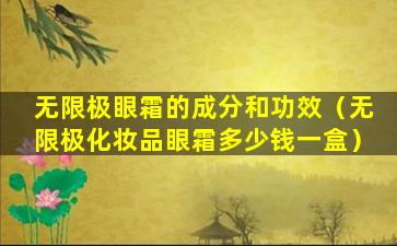 无限极(Infinitus)是中国的一个健康产品品牌,隶属于李锦记健康产品集团。无限极的产品线包括保健食品、个人护理品等。关于无限极眼霜的成分和功效,由于产品线可能会有更新和变化,具体的成分和功效需要参考最新的产品说明书或官方网站提供的信息。