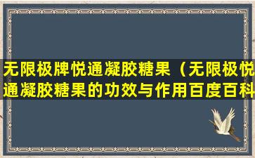 截至我的知识更新日期(2023年),关于“无限极悦通凝胶糖果”的具体功效和作用,我无法提供详细信息,因为这可能是一个特定品牌的产品,而我的数据库中没有包含该产品的详细信息。百度百科的内容可能会随时更新,因此建议直接访问百度百科或联系产品制造商以获取最新和最准确的信息。