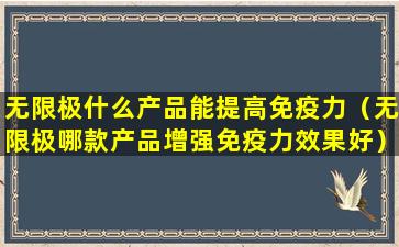 无限极(Infinitus)是一家中国的健康产品公司,提供多种健康食品和营养补充品。关于增强免疫力的产品,无限极有多款产品声称具有增强免疫力的效果,但具体哪款产品效果最好,这通常取决于个人的体质、健康状况以及产品的成分。