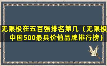 如果您想了解无限极在“中国500最具价值品牌排行榜”中的具体排名和相关信息,建议直接查阅最新的榜单或相关新闻报道,因为这些信息会随着每年的评估结果而变化。同时,您也可以访问世界品牌实验室的官方网站或相关财经媒体获取最新的排名和分析报告。