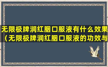 无限极牌润红胭口服液是一种保健品,其宣称的功效通常包括补血养颜、改善肤色等。根据中国法律法规和社会主义核心价值观,保健品不能宣称具有治疗疾病的功效。保健品的作用主要是辅助调节身体机能,增强体质,而不是替代药物治疗疾病。