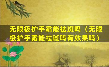 无限极护手霜可能不具备祛斑的功效,如果你想要祛斑,应该选择专门的美白产品,并结合适当的防晒措施。