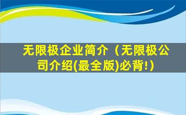 如果您想观看无限极的公司介绍视频,建议访问无限极的官方网站或其官方社交媒体账号,以获取最新和最准确的信息。请注意,由于我无法提供实时的网络内容,建议您直接在网络上搜索相关视频。同时,由于无限极是一家直销公司,其商业模式可能会受到不同国家和地区法律法规的限制,因此在了解相关信息时,请确保遵守当地的法律法规。