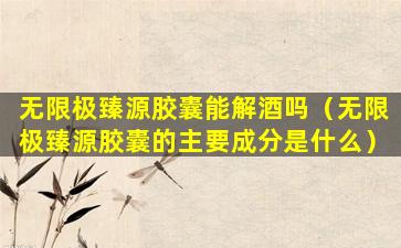 无限极(Infinitus)是一家中国的保健品公司,其产品线包括多种健康食品和营养补充品。关于“无限极臻源胶囊”是否能解酒,这需要查看该产品的具体成分和官方说明。