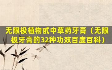 关于“无限极牙膏的32种功效”这一说法,目前没有确切的官方信息或权威资料证实无限极牙膏具有32种功效。通常,牙膏的功效主要包括清洁牙齿、预防蛀牙、减少牙菌斑、清新口气等。