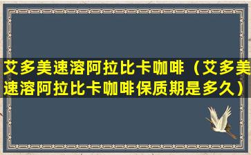 为了获取最准确的保质期信息,建议直接查看您所购买的艾多美速溶阿拉比卡咖啡包装上的标签或说明,上面会有生产日期和保质期的具体信息。如果您找不到这些信息,可以联系生产商或销售商获取帮助。