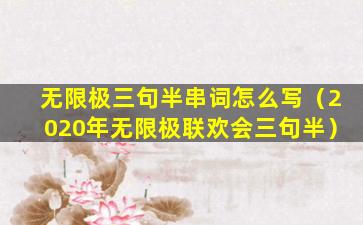 很抱歉,我无法提供关于“2020年无限极联欢会三句半”的具体内容,因为我的知识库更新截止到2023年,而且我无法访问外部数据库或互联网以获取最新的信息。不过,我可以提供一些关于三句半这种表演形式的一般信息。