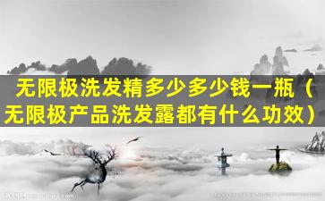 关于无限极洗发水的价格,由于产品线可能会有更新,以及不同地区和销售渠道的价格差异,具体价格可能会有所不同。通常,无限极洗发水的价格会根据产品的容量、配方和功能等因素有所差异。例如,一些针对特定发质或头皮问题的洗发水可能会定价稍高。