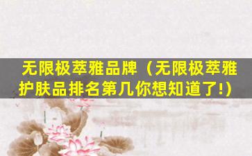 无限极(Infinitus)是一家中国的健康产品公司,其产品线包括了护肤品、保健品等。萃雅是无限极旗下的一个护肤品品牌。关于无限极萃雅护肤品在市场上的排名,这通常需要参考具体的市场研究报告或者消费者调查数据。