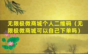 无限极是一家中国的直销公司,主要从事健康产品的销售。关于“无限极微商城个人二维码”,这通常是指无限极公司为其直销员或会员提供的一种工具,用于在微信等社交媒体平台上推广和销售产品。