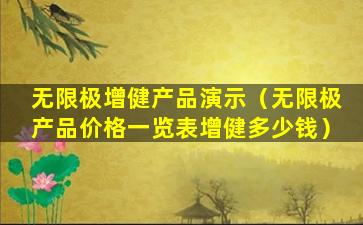 请注意,由于我是一个聊天机器人,我无法提供实时的产品演示或销售信息。如果您对无限极增健产品感兴趣,建议直接访问无限极的官方网站或联系其客服获取最新的产品信息和演示活动详情。同时,购买任何保健品前,建议咨询专业医疗人员,确保产品适合您的健康状况。