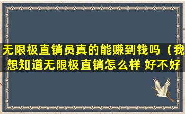 在知乎等社交平台上,关于直销员是否能赚到钱的问题,会有不同的声音。有些人分享了他们通过直销赚取可观收入的经历,而另一些人则可能因为种种原因没有获得预期的收益。因此,是否能通过成为无限极直销员赚到钱,并没有一个统一的答案,它取决于个人的努力、市场条件和公司的支持等多方面因素。