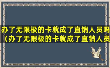 如果你办理了无限极的卡,这可能意味着你已经注册成为其会员或潜在的直销人员。但是,是否成为直销人员,还需要看你是否接受了相关的培训,并且是否取得了直销员证。你还需要了解无限极的具体政策和程序,以确定你是否已经正式成为其直销团队的一员。