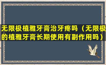 无限极(Infinitus)是一家中国的健康产品公司,其产品包括植雅牙膏。关于植雅牙膏长期使用的副作用,目前没有公开的科学研究或官方声明指出该产品有长期使用的副作用。