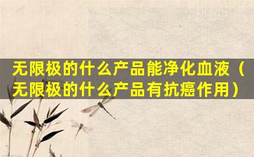 无限极(Infinitus)是一家中国的健康产品公司,隶属于李锦记健康产品集团,主要生产和销售中草药健康产品。关于“净化血液”的产品,通常指的是那些能够帮助改善血液循环、清除体内毒素、调节身体机能的产品。