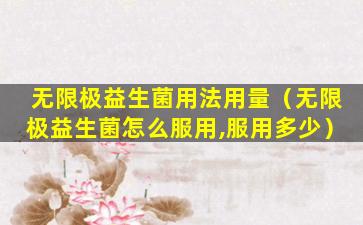 无限极益生菌是一种含有益生菌的保健品,旨在帮助维持肠道健康。使用任何保健品之前,建议您仔细阅读产品说明书,并遵循生产商推荐的用法用量。