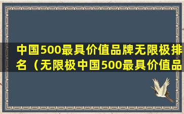 关于"无限极"在"中国500最具价值品牌"中的排名,由于这个榜单每年都会更新,具体的排名会随着品牌价值的变化而变化。因此,要获取最新的排名信息,需要查阅最新的榜单发布。