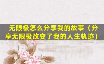 无限极是一家中国的直销公司,主要销售健康产品。如果你想要分享你在无限极的故事,可以按照以下步骤进行: