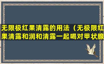无极限红果清露和润和清露是一些市场上的产品,它们通常被宣传为具有某些健康益处,但这些产品的具体成分、作用机制以及它们对甲状腺结节是否有益,需要通过科学研究来验证。在没有充分的科学证据支持的情况下,不能断言这些产品对甲状腺结节有治疗效果。