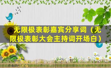 请注意,以上内容是基于一般直销公司表彰大会的嘉宾分享词的常见要素,具体内容会根据实际情况和嘉宾的个人经历有所不同。如果您需要具体的无限极表彰大会嘉宾分享词的实例,建议直接联系无限极公司或查阅相关的公开报道和资料。