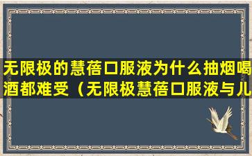 无限极(Infinitus)是一家中国的保健品公司,其产品包括各种口服液、胶囊、粉剂等。慧蓓口服液是无限极的一款产品,通常被宣传为有助于调节身体机能、增强免疫力等。关于“抽烟喝酒都难受”这一说法,并没有官方的科学研究或证据来支持。