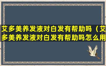 艾多美养发液是一种市面上销售的头发护理产品,它通常宣称能够滋养头发,改善头皮环境,促进头发生长等。关于它是否能够帮助治疗白发,目前没有权威的科学研究或证据来支持这一说法。