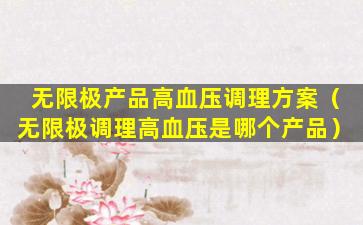 无限极是中国的一家健康产品公司,它提供多种健康和营养产品。关于高血压的调理,无限极可能会有一些产品声称可以帮助调节血压,但是需要注意的是,任何关于健康产品的声明都应该基于科学证据,并且最好在医生或专业医疗人员的指导下使用。