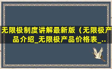 如果你想了解无限极的最新制度,建议直接访问无限极的官方网站或联系公司的官方代表获取最准确和官方的信息。同时,加入任何直销公司前,应仔细研究其商业模式,确保其合法性,并考虑自己的实际情况是否适合参与。