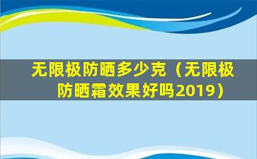 无限极(Infinitus)是一家中国的健康产品公司,提供各种保健品和护肤品。关于无限极防晒产品的具体克数,这取决于具体的产品型号和包装。通常,防晒产品的包装规格可能会有30克、50克、100克等不同大小。