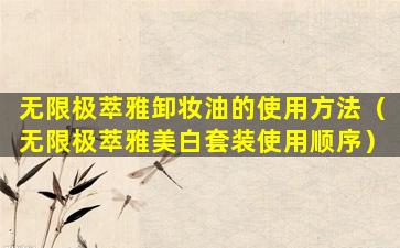 无限极萃雅美白套装通常包含几个产品,使用顺序应该遵循从清洁到滋润的原则。以下是一般的使用顺序: