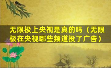 如果是指无限极在央视的广告或者正面报道,那么这是可能的,因为很多企业都会通过央视这样的平台来提升品牌知名度和形象。但如果是指央视对无限极的负面报道或者调查,那么这也是可能的,因为央视有责任对社会现象进行监督和报道。