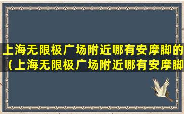 上海无限极广场位于上海市浦东新区,附近有许多提供按摩服务的店铺。如果您想要找按摩脚的地方,可以考虑以下几种方式: