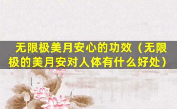 无限极是中国的一家直销公司,主要销售健康食品、个人护理品和家居用品等。关于“美月安心”的功效,这可能是无限极的一款产品,但是没有具体的官方信息或者科学研究来证实其功效。