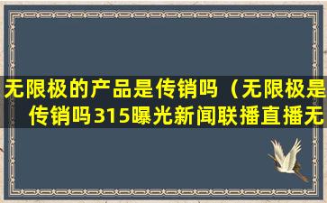 至于“315曝光新闻联播直播无限极”,每年的3月15日是中国的消费者权益日,当天会有各种媒体曝光一些消费者权益问题,包括一些企业的违规行为。如果无限极或其他企业被曝光,通常会有官方的新闻报道。但是,由于我无法获取最新的新闻报道,建议您直接查看最新的新闻联播或其他官方新闻渠道,以获取最准确的信息。