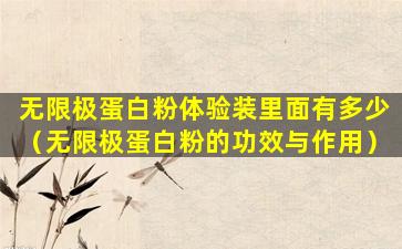 无限极(Infinitus)是一家中国的保健品公司,其产品线包括多种健康食品和营养补充品。关于“无限极蛋白粉体验装”的具体含量,由于产品可能会有更新或变化,最准确的信息应该直接从官方渠道或授权销售点获取。