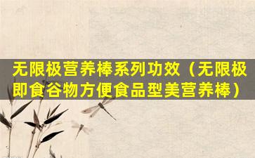 请注意,以上信息是基于一般营养棒的特性,具体到无限极营养棒系列的功效,需要查看该品牌提供的官方资料或产品说明书。由于我无法访问最新的数据和产品信息,建议直接咨询无限极官方或查看其官方网站上的产品说明。