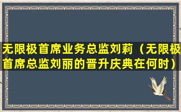 如果您想了解刘丽首席总监晋升庆典的具体时间,建议直接联系无限极公司或查看其官方网站和社交媒体平台上的公告,以获取最准确和最新的信息。无限极的销售代表或相关社区成员可能也会分享这类信息。