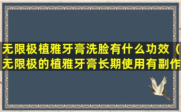 无限极(Infinitus)是一家中国的健康产品公司,其产品包括植雅牙膏。关于植雅牙膏长期使用的副作用,目前没有公开的科学研究或官方声明指出该产品有长期使用的副作用。