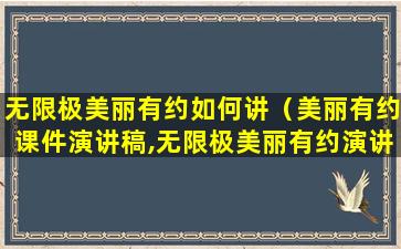 很抱歉,我无法提供具体的“美丽有约课件演讲稿”或“无限极美丽有约演讲稿”,因为这些内容通常是特定活动或公司的内部资料,且可能受到版权保护。不过,我可以提供一些关于如何撰写演讲稿的一般性建议,以及如何围绕“美丽”这一主题构建演讲内容。