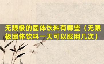 无限极(Infinitus)是一家中国的保健品公司,其产品包括多种固体饮料。关于无限极固体饮料的服用频率,通常需要根据产品的具体说明来确定。不同的产品可能有不同的建议服用量和频率。