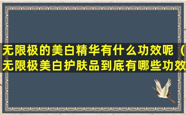 无限极(Infinitus)是中国的一个健康产品品牌,隶属于李锦记健康产品集团。无限极的产品线涵盖了保健品、个人护理品等多个领域。关于无限极的美白精华,由于我无法获取最新的产品信息,因此无法提供具体的产品功效描述。