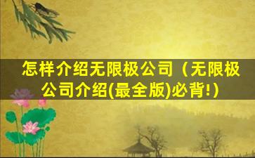 在介绍无限极公司及其产品时,可以从以下几个方面进行: