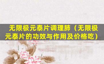无限极是中国的一家直销公司,主要销售健康产品。关于“无限极元泰片调理肺”的说法,首先需要明确的是,任何健康产品或药物的效果都应该基于科学研究和临床试验的结果。在中国,所有健康产品都需要通过国家食品药品监督管理局的审批,并且其宣传内容必须符合相关法律法规。