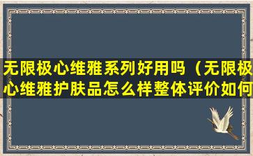 关于“无限极心维雅系列好用吗”的问题,这主要取决于个人的肤质、使用习惯以及对产品的个人偏好。以下是一些评估护肤产品是否适合自己的因素: