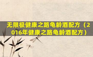 关于“2016年健康之路龟龄酒配方”,我无法提供具体的信息,因为这可能涉及到特定的商业产品或个人配方,而这些信息通常不会公开分享。龟龄酒是一种传统的中药酒,通常由多种药材和白酒或黄酒浸泡而成,旨在滋补强身、延年益寿。