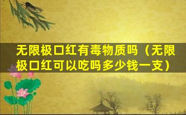无限极是中国的一个品牌,主要生产健康食品和日用品。关于无限极口红是否含有有毒物质,需要根据具体产品的成分和相关检测报告来判断。